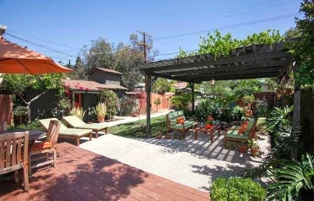 Priced at $859k, it features original wood floors, original moldings–many unpainted, gorgeous built-ins and niches, casement windows, a vintage-y/modern mint colored kitchen, a vintage bath with hex tile flooring, a fireplace and a lush backyard with a deck and patio flanked by a vine covered pergola. Is this camera-ready abode enticing enough? Apparently, since it’s been featured on both the big and little screens. For more information, contact Vanessa Yan.